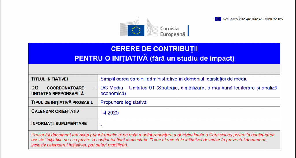 În 2025, Comisia Europeană a lansat o cerere de contribuții pentru o nouă propunere legislativă ce are ca scop simplificarea sarcinii administrative în domeniul legislației de mediu. Aceasta vine pe fondul unei presiuni crescânde: peste 1 din 3 IMM-uri declară că dificultățile birocratice le încetinesc sau chiar le împiedică să adopte măsuri ecologice (ex. folosirea resurselor mai eficient, energie regenerabilă).